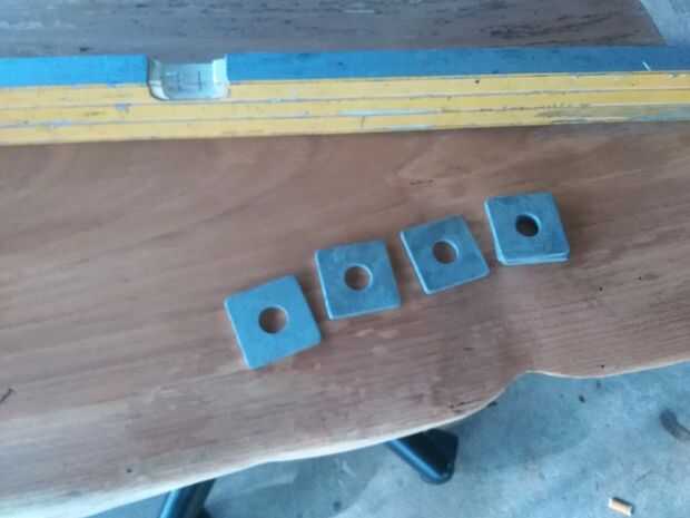 Wack la parte superior del soporte de pierna rueda limpio arriba y abajo de la cosa, aviso no es que es porque es una silla de los bancos, empacó lo con estas arandelas cuadradas hasta que ya era un poco nivel