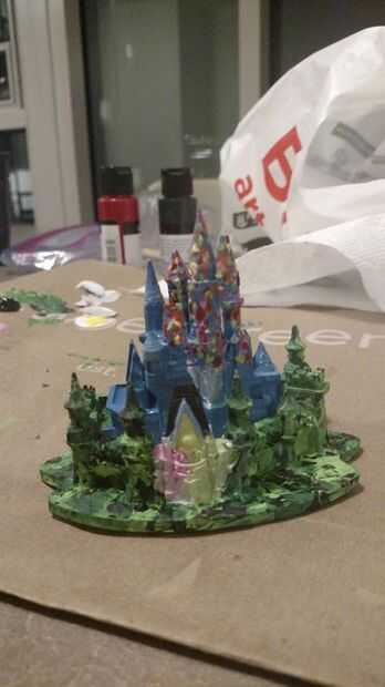 Usé mi pincel más fino para pintar ligeramente pocas líneas blancas hasta el techo de la casa para amarrar los globos.
