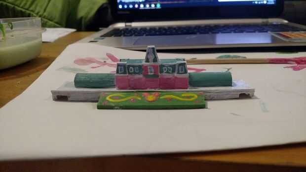 Para finalizar esto, volví sobre la casa con algunos acentos más marrón en las molduras y agregado varios más flores, nubes y globos para hacer la escena de la vida.