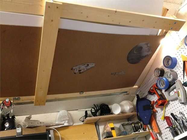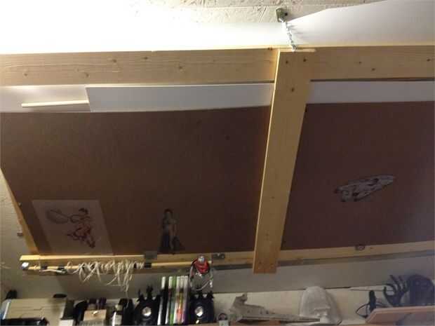 Mi nave tiene varias estaciones de trabajo que son sólo pulgadas una de otra. Mi silla de rodillos se encuentra en el centro y me mueve de estación a estación. Mi primera estación (que yo llamo mi central) es una colección de herramientas, puntas de prueba, fuentes de alimentación del Banco, pantallas y componentes (que tendrá una construcción instructable en ese proyecto) tengo una luz/lupa brazo, sin embargo, sólo ilumina un área pequeña a tiempo. Así que decidí que necesitaba iluminar el comando estación (uno). El desplegable de estante que almacena mis hojas de plástico (estireno) se une a la azotea y se cuelga por encima de la estación. Por lo tanto, he decidido usar parte de su estructura para sostener los LEDs extras.