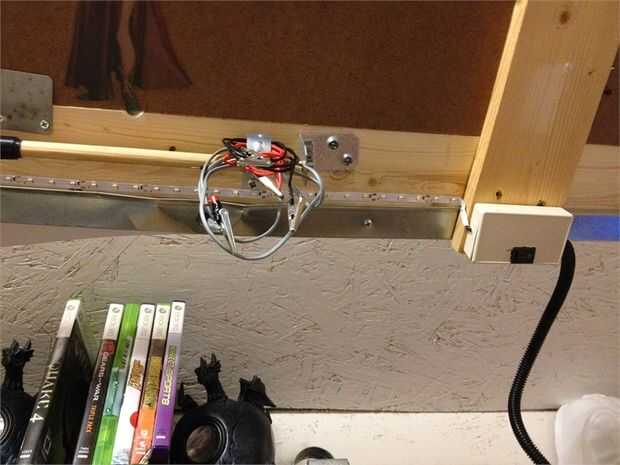 He conectado la línea de LED en el soporte posterior de la plataforma y atornilló la caja del interruptor en el soporte central.