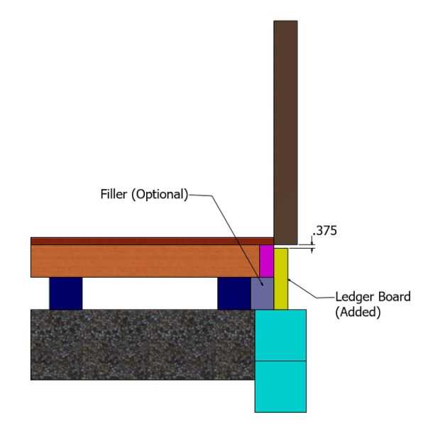 El primer paso es colocar la Junta de contabilidad al frente de la nave. Asegúrese de dejar suficiente espacio debajo de la puerta para el despacho. La distancia recomendada es de entre 3/8" y 1/2". Tenga en cuenta la subida entre la parte superior de la Junta de contabilidad y el suelo. Cuanto mayor sea usted hacer la diferencia, el más grande la protuberancia al final de la rampa.