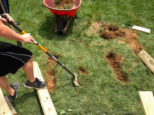 (En realidad mi hijo) cavamos hacia fuera la suciedad para las vigas y la pieza final. Tenga en cuenta que la madera va a estar en tierra. Verificar que la madera que usted compra es aceptable que en contacto con el suelo (UC4A-UC4C)