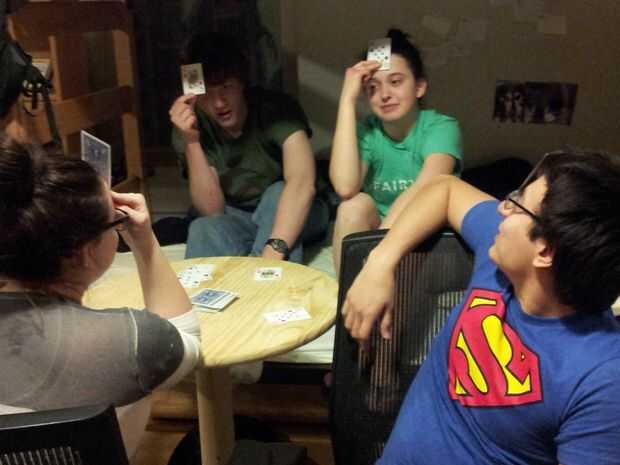 Después de que la cubierta ha sido barajada, cada jugador debe llevar una tarjeta desde la parte superior de la cubierta y ponerlo en alguna parte que todos los jugadores pueden ver excepto ellos mismos. Es importante que el jugador no puede ver su tarjeta pero todo el mundo puede.