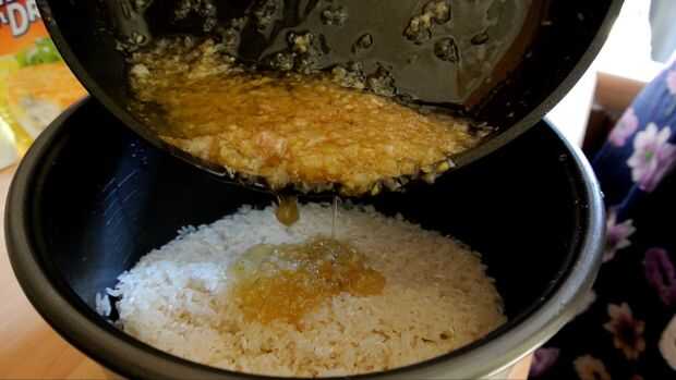 5. Ponga la olla para cocinar. Cuando los resortes de cocina de arroz caliente, abra la tapa y mezcle el arroz de abajo hacia arriba y la tapa del. (Repita este paso hasta que el arroz se cocine a su gusto. Repetir unas cuantas veces va a crear una textura más suave.)