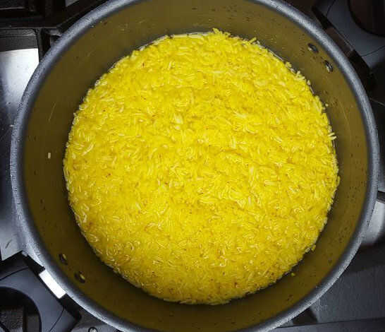 Paso 6: Esparcir la mezcla de arroz con azafrán