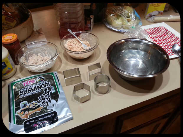 ¿El desafío es, cómo hacer 4 tipos de bolas de arroz que son más o menos pequeñas y fácilmente decirles aparte? Si has seguido una receta estándar, usted terminaría con bastante grandes y sería incapaz de decir un tipo de otro. Ya que estábamos haciendo regularmente atún, atún picante, cangrejo regular y cangrejo picante, decidimos la mejor manera de decirle a uno de otro era utilizar diversas formas. Afortunadamente, tengo una colección de moldes de acero alimentos que, asombrosamente, eran perfectos para hacer Onigiri pequeños en una variedad de divertidas formas.