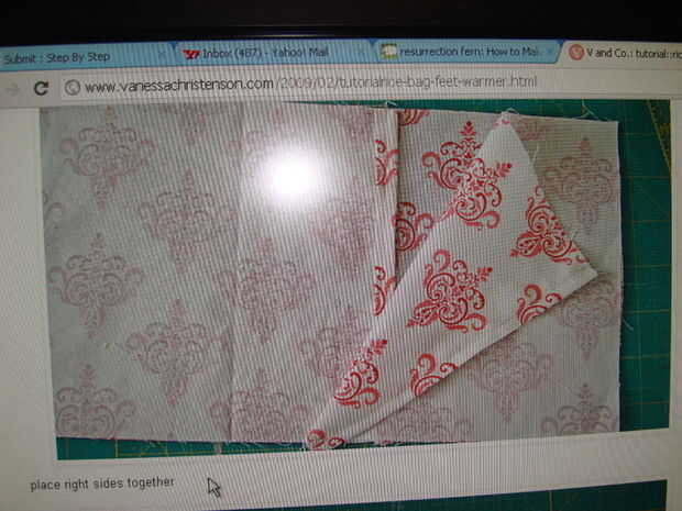 yo no me consigo una foto de este paso porque cosió mal.  Así que tomé fotos de su página para mostrar la forma correcta.  No quiero confundirte sobre la tela diferente. Estoy incluyendo lo para demostrar cómo no pin que cubrió.  Siga las instrucciones para el los cuadros color de rosa. Si estas fotos te confunden ir a su página y ver el diseño.