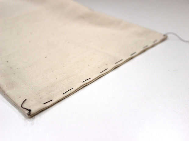 Utilizando la máquina de coser, coser el borde libre de la bolsa cerró con la puntada Hilvanar como guía.