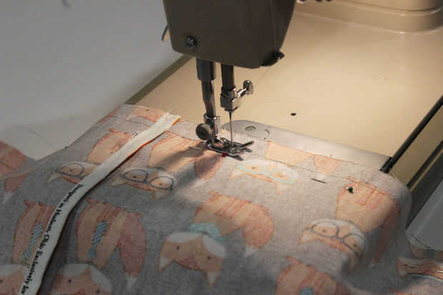 Prender juntos los cantos largos de la cubierta y coser con la máquina de coser.