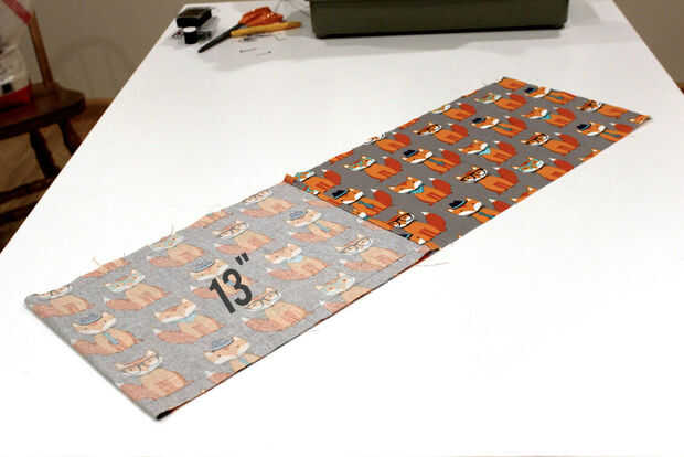 Tomar el primer borde corto de la cubierta externa y dóblalo sobre 13" hacia el centro.