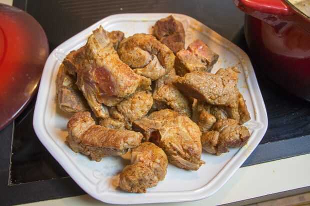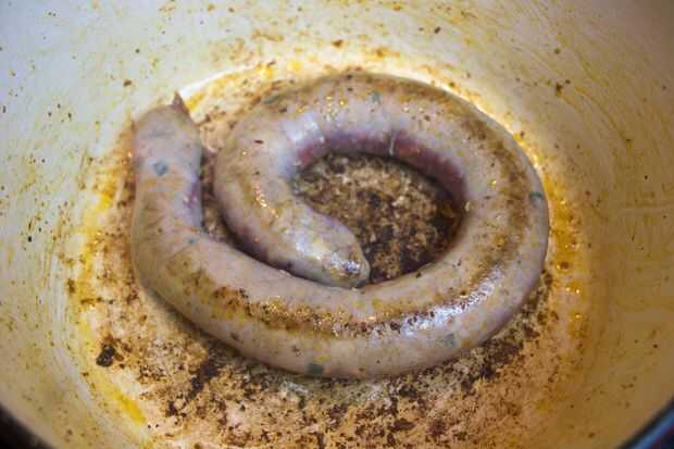 Dorar la carne y el chorizo, una vez doradas, añadir cebolla y deje caramelizar. Añadir agua para Desglasar la olla y obtener todas las golosinas de sabor desde el fondo, esto es lo que hace tu salsa!