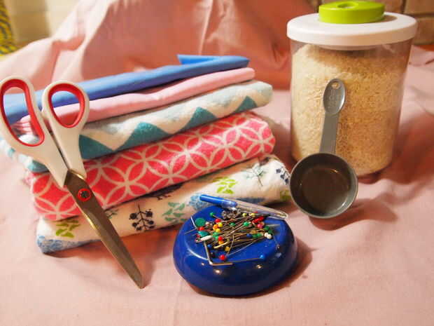 esto es una solución barata y fácil de calentamiento! Usted puede hacer una calefacción del cojín de una variedad de tela, rellenarlo con arroz o harina de avena y agregar hierbas secas (o en mi caso, una bolsita perfumada de telas de Jo-Ann) para u