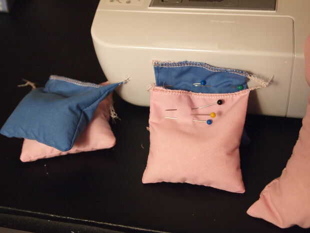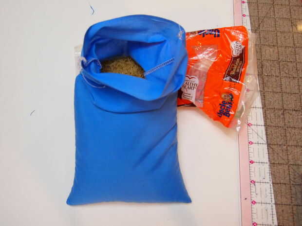 - Llenó las almohadillas de calefacción grande 3 1/2 a 4 tazas de arroz. Luego doblar hacia adentro las costuras finales y había clavado hacia abajo. Yo también cubrió a llenado para arriba cojines como lejos como sea posible (ver la imagen por favor) para tratar de impedir que se derrame hacia el área de arroz sería coser para la costura final.