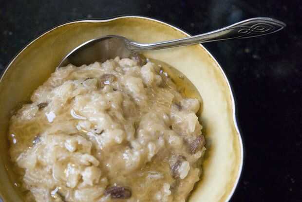 Cucharada de arroz con leche en tazón de servir y refrigera durante 1 hora.