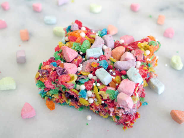 Me encanta todo lo arco iris y un montón de azúcar! Estos arco iris arroz Krispies trata tener ambos de los! Trata de hacer de guijarros con sabor a fruta no es único, pero quería hacerlas de todos modos y también agregar bombones de cereal y poco rociado. Los resultados son bastante coloridos y deliciosos!