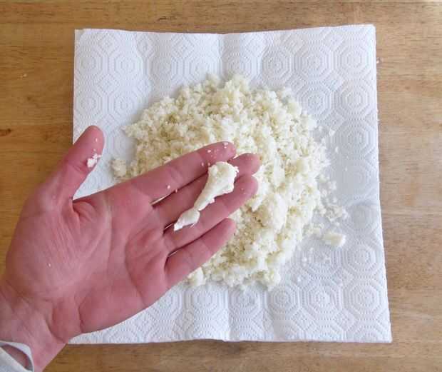 Retire cualquier grandes trozos o floretes de la coliflor el arroz de coliflor. Colocarlos en el procesador de alimentos para procesar y moler hasta que queden del mismo tamaño que el "arroz" ya ha creado.