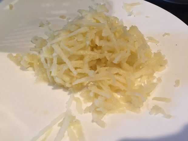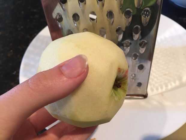 Luego pelar y rallar la manzana en trozos gruesos (sé que puede sonido extraño pero la manzana se desintegra cuando se cocina).