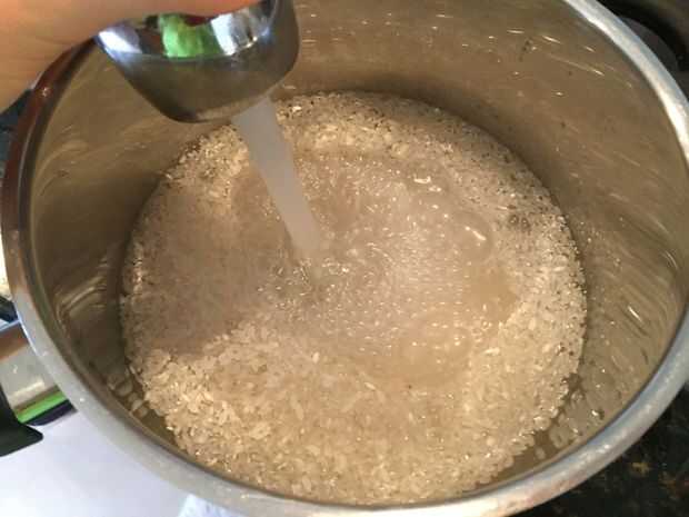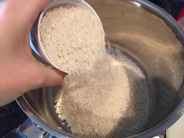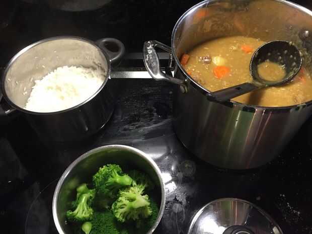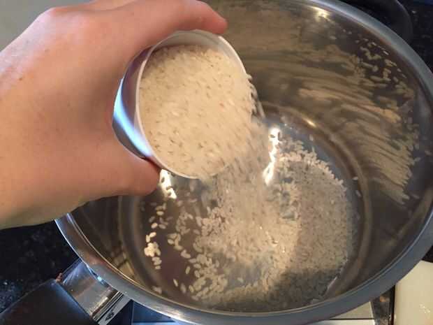 Primero lave el arroz en una olla grande de medio bajo arroz frío 2 - 3 veces hasta que el agua aparezca claro. Esto quita el almidón de arroz, dándole una textura mejor. Con unos 10 minutos izquierda de su cocina curry (de cuando quiere servir su comida) preparación del arroz mediante la adición de 2 3/4 tazas de agua fría por 2 tazas de arroz de grano corto lavado en el bote. Lentamente llevar el arroz a hervir, luego reducir el calor baja y cubrirlo, lo que le permite cocinar durante unos 10 minutos.