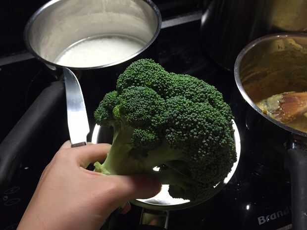 Para el brócoli, lavar con agua fría luego en un lugar de la olla el brócoli y unos 2 cm de agua y vapor, tapa en alto durante 3-5 minutos dependiendo de cómo firma te gusta las verduras. drenar cualquier agua extra y sazonar con sal.