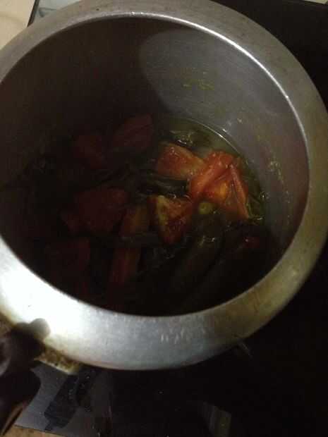 Preparación de stock: Tomar todo tu verdura que le gustaría hervir para tener junto con el arroz de gambas en una olla a presión y vierta suficiente agua para sumergir a las verduras. Mezcla de sal en la olla. Cierre la tapa y deje que se cocine en sim (fuego lento).