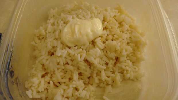 Añadir aproximadamente 1 cucharada de mantequilla por cada taza de arroz sobrante.