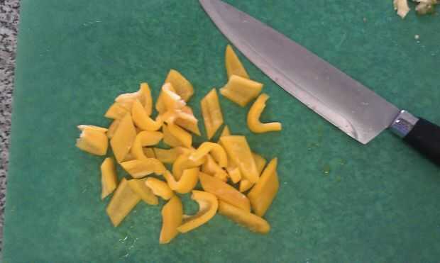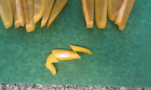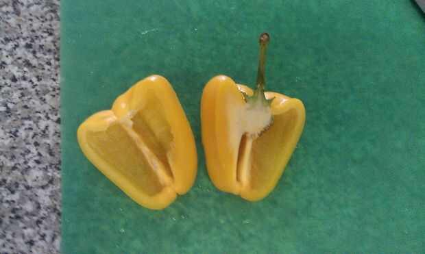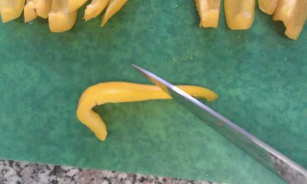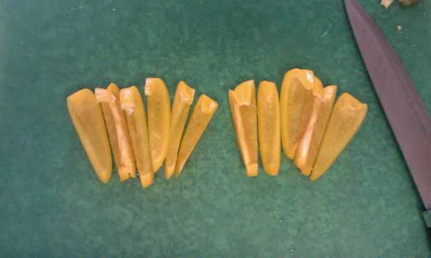 3) el mismo tipo de cosa con pimientos, al cortarlas por la mitad Asegúrese de quitar todos los bits blanco y las semillas