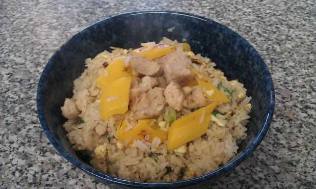 arroz frito es un alimento básico en la cultura Asiática. Se puede hacer con muchos diferentes ingredientes: pollo, cerdo, carne de res y la lista continúa. Decidí hacer una nueva variante con mariscos. Tenía salmón y camarón que necesitaba utilizar