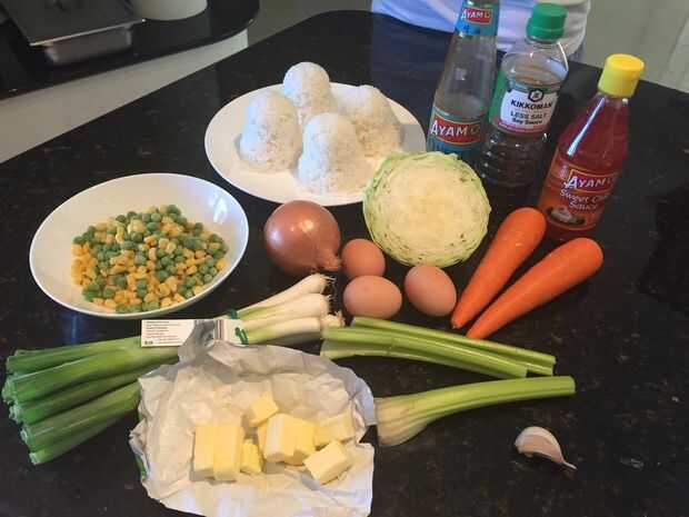 -4 tazas cocida corta grano de arroz (2 tazas de arroz crudo = 4 tazas de arroz cocido)