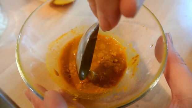 Preparar mezcla de salsa colocando el caldo de pollo, jugo de piña, polvo de la cúrcuma y pescado de la salsa en un bol. Removemos bien, asegurando que no queden grumos y reservamos para más adelante.