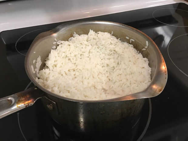 Poner 4 tazas de arroz a hervir. Añadir 2 tazas de arroz, baje el calor al punto bajo y cubrir. Cocinar durante 20 minutos, no retire la tapa durante la cocción.