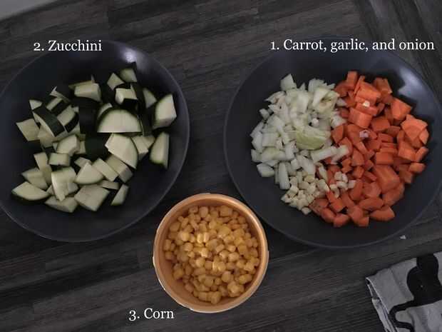Mientras tanto, lavar la zanahoria y el calabacín, luego pela la zanahoria.