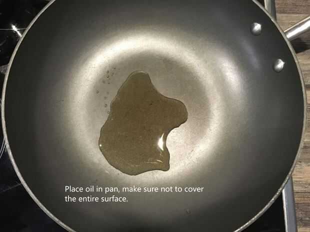 Vierta el aceite en una cacerola cacerola o wok y deje a fuego alto hasta que empiece a extenderse.