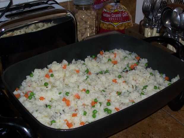 Esta es una receta super fácil para arroz frito de verduras. Toma menos de 30 minutos y sirve 4-6 personas.Paso 1: ingredientesPaso 2: Cocinar el arroz Cocer el arroz según las instrucciones en la caja.Para la marca que utiliza, que es rápida cocinar