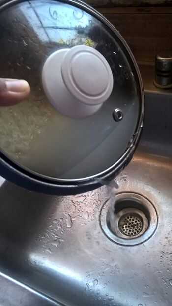 Vierta agua en la olla y luego incline el agua hacia fuera. Repetir esta operación 2 - 3 veces por lo menos porque se limpia el arroz.
