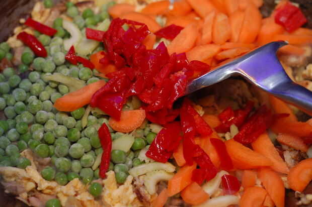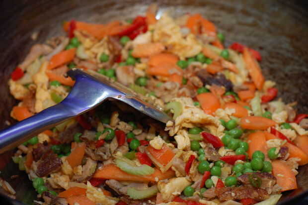 Arroz huevo frito con cerdo y verduras (5 / 6 paso)