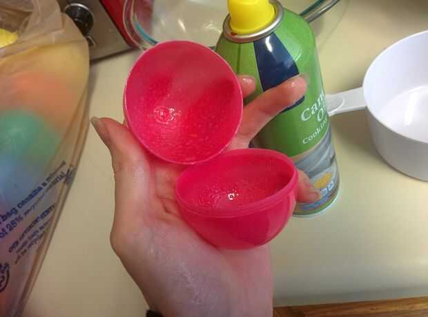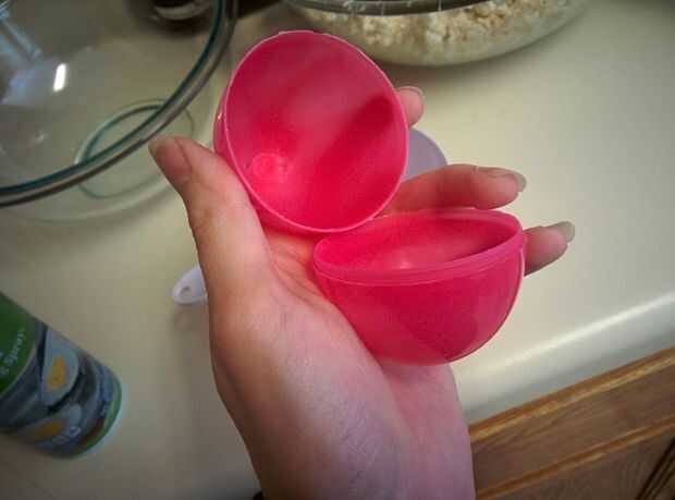 Y ahora es el momento para conseguir en forma! Es incluso más fácil que pensé que sería. Abrir los huevos (me pareció más fácil hacer que las dos mitades estén totalmente separadas), rociar con aceite (no demasiado, pero seguro que todos que los lados están cubiertos), llenar ambas mitades y cierre para arriba firmemente. Si usted ha embalado correcta, debería formar el tratar en forma de huevo bastante perfecto. Asegúrese de que usar la "masa", porque si usted lo deja sentado, no será fácil de moldear más adelante. Por ahora, necesita permiten los huevos durante unas horas.