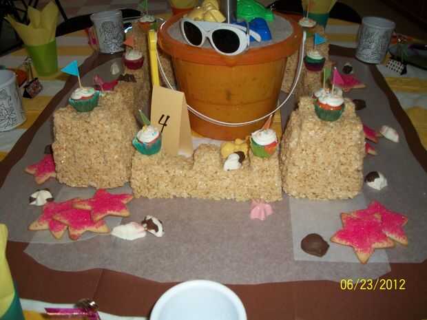 No quería tallarlo o forma, y que necesitábamos un tamaño específico por lo que terminamos usando nuevos moldes de castillos de arena. Hemos querido cuatro torres y cuatro paredes por lo que utilizamos casi tres cajas grandes de krispies de arroz y cinco bolsas de malvaviscos. Hice dos tandas en un momento pero he tenido más de un molde de la pared, si tienes menos moldes que debe hacer menos a la vez. También hice la trata realmente seco, utilicé siete y media tazas de rice krispies por lote en lugar de seis. Para presionar en los moldes utilicé una espátula de goma.