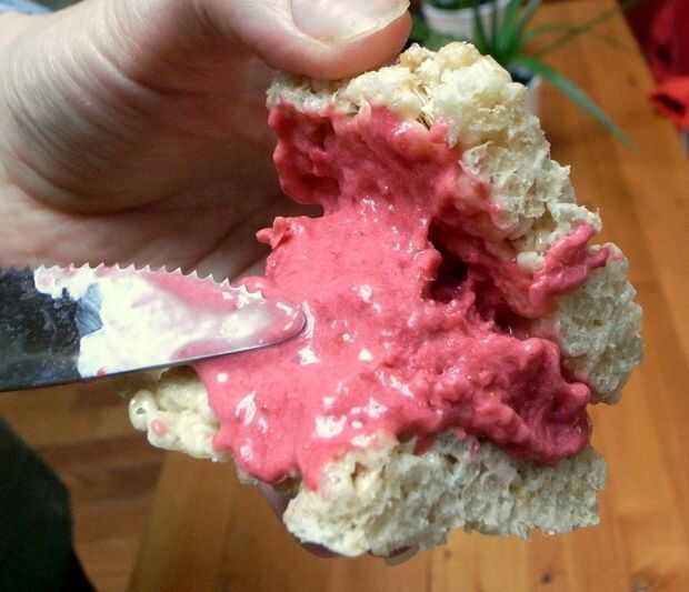 Así que tal vez arroz Krispies trata de esta versión eran demasiado grueso, y tal vez helado de frambuesa no es la mejor opción para el relleno. Apuesto que sabrían impresionante si todos estábamos todavía 8 años!