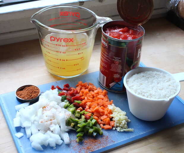 No dude en añadir una pizca de cúrcuma si quieres que sea naranja loco. : D También puede Agregar Maíz congelado y guisantes en cuando añades el caldo.