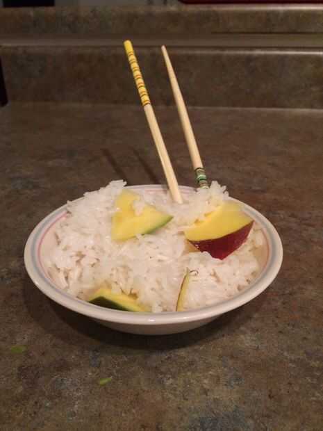 Sticky de coco arroz con mango es un plato tradicional tailandesa que es perfecto para un día de verano. Fácil de hacer, delicioso, barato, arroz con coco es un debe tener. Y con mangos maduros es un tratamiento aún mejor!