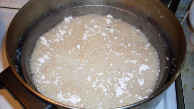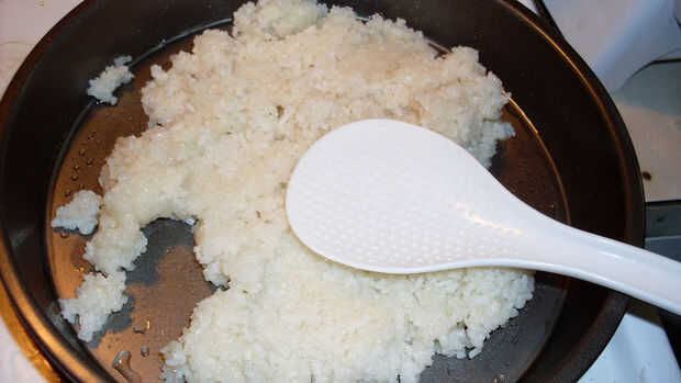 Vierta la mezcla sobre el arroz cocido al vapor, luego vapor otra vez hasta que la crema esté firme al tacto
