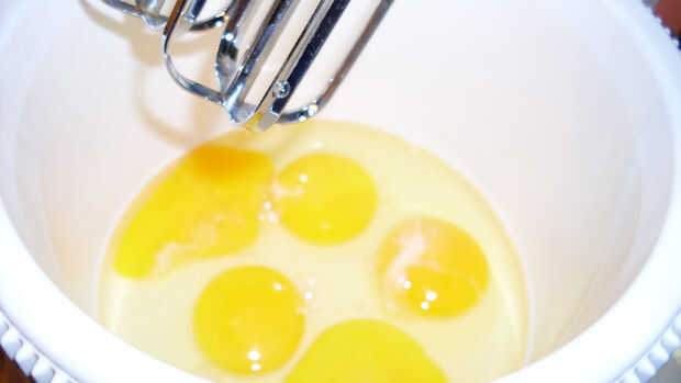 Mientras tanto, batir los huevos y el resto de los ingredientes