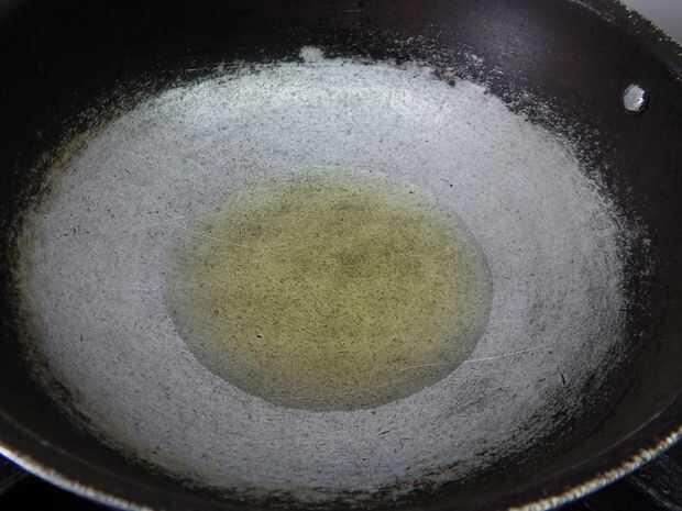 Calentar un kadai / pan con aceite, añadir mostaza, farfulla una vez, añadir urad dal, chana dal n cacahuetes. Alevines hasta oro.
