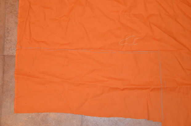 En primer lugar tomar una longitud barata algunos de tela de algodón y corte un rectángulo fuera de él. No importa el tamaño, usted puede elegir para hacer un bolso grande o una bolsa pequeña.