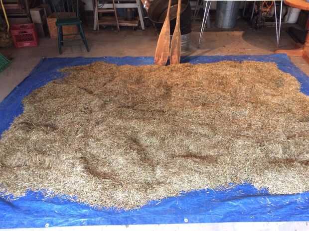 Primero se separan el arroz verde en una lona en el piso del garaje por una semana y mover todo con un rastrillo solo dejó qué humedad puede secar.