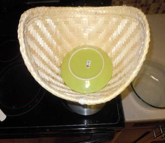 Paso 6: Coloque una placa que se ajusta dentro de la canasta boca abajo sobre el arroz en el vapor. Ver imagen de abajo.