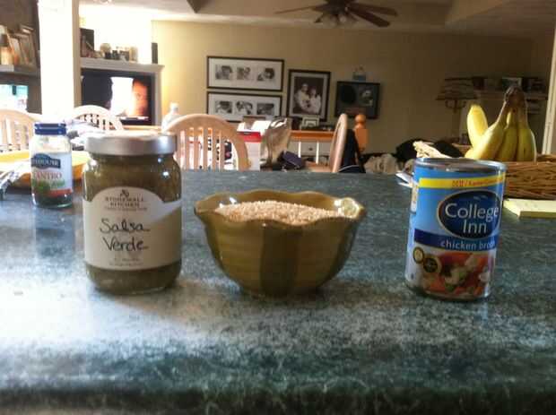 La salsa verde y el caldo de pollo y ponerlos en la sartén con el arroz
