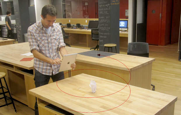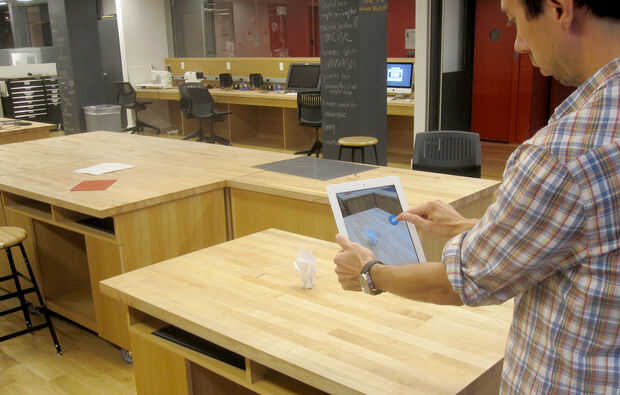 Con el iPad (o cámara digital) Abra la aplicación Autodesk 123D Catch. Tomar fotos del papel arrugado. Debe iniciar en un ángulo bajo y aumentar progresivamente la altura de la cámara. Moverse el papel arrugado en sobre 15-20 grados para cada foto. Utilice el máximo de las 30 fotos asignados para una captura más precisa.
