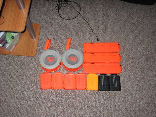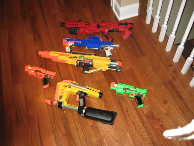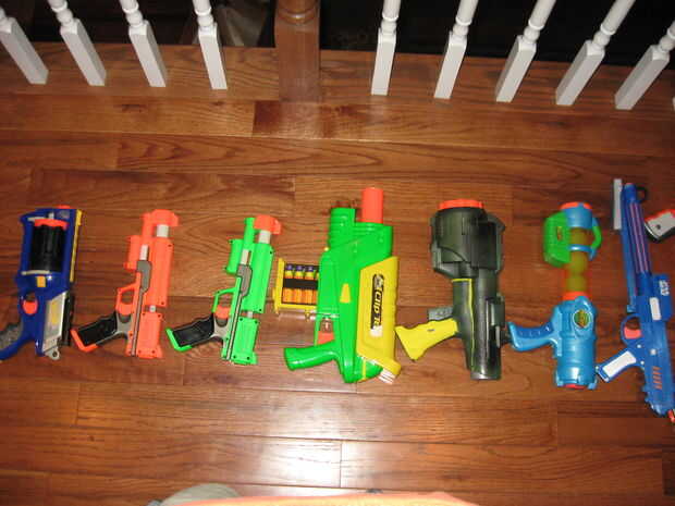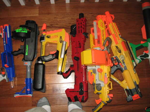 Este es mi arsenal de nerf.1 asalto.2 mis pistolas de pintado.3 mis favoritos.4 pistolasEl longshot es mi principal.